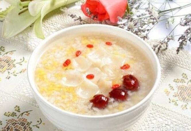 山药红枣粥。可以去除体内湿气,防止形成痘痘肌肤。
